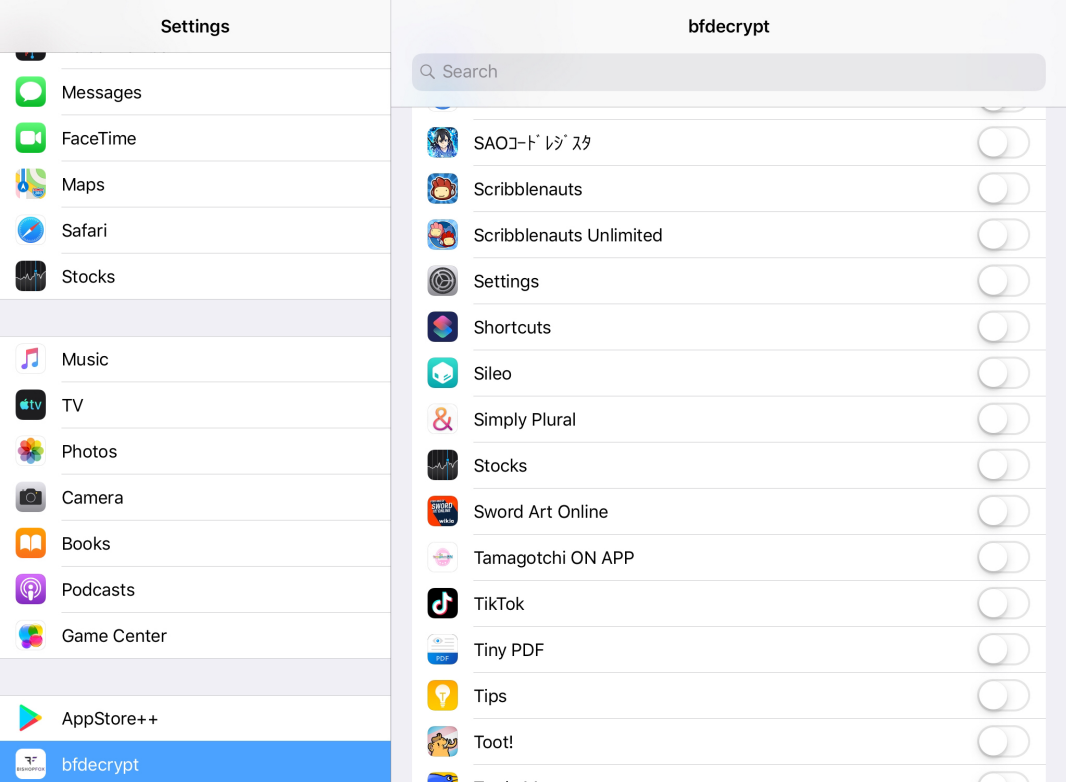 then; it'll decrypt it, and can be accessed via the little "Folder" icon in the top right, bfDecrypt (iOS 11-15) tested on iPad Mini 2 running iOS 12.5.7 bfdecrypt is an app decrypt utility for iOS 11+; however i have personally had issues with it on (some) applications. after its installed, add "http://level3tjg.me/repo" and then search for "bfdecrypt" and install it; after that, you can open your standard iOS settings application; scroll down to the "bfdecrypt" option,