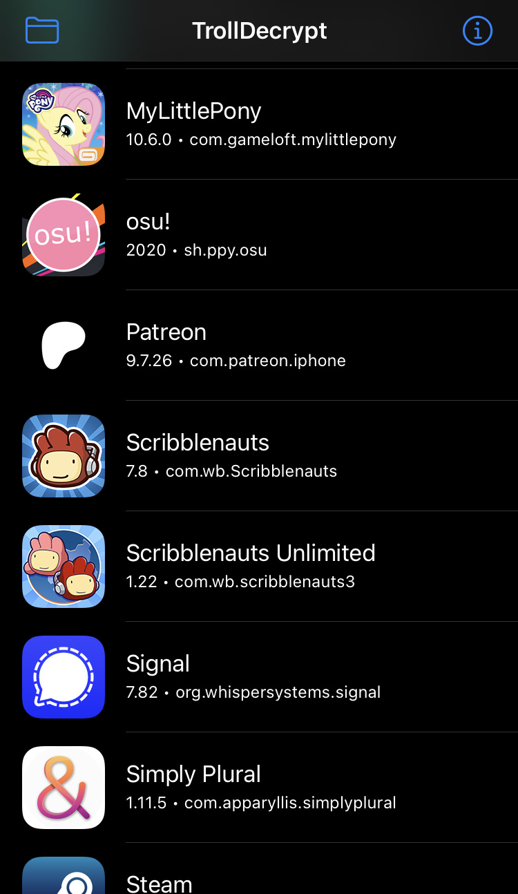 | How do you decrypt iOS applications anyway? - The Crystal WebsiteI occasionally watch videos about software archival or preservation on youtube, always coming up against the same issue: how the actual fuck do you decrypt an iOS app??! many don't know this but; apple has a DRM Scheme called "FairPlay" and another thing about this is that DRM scheme is applied to all applications from the App Store, even free ones so if you just rip an IPA file from your device or using iTunes, it wont actually work; that IPA file will work on your device; for that you need to decrypt or otherwise "crack" the application; and the way to do that; and as many have found out, there is alot of conflicting information online, about how to do this however unfortunately, alot of jailbreak related forums tend follow (un)ethical hacking, wherein selling a 0 click rce to the government to spy on journalists and blow people up is completely fine and ethical. anyway; so first is that your device needs to be either jailbreakable, or capable of installing TrollStore; well i only have 3 iOS devices, from different periods; however it probably will cover (alot?) of cases; TrollDecrypt (iOS 14-17) tested on iPhone 7 running iOS 15.8.3 if your device is compatible with TrollStore then install it (in our case, using TrollInstallerX via Sideloadly.