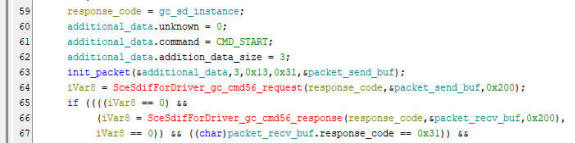 What this effectively means is that this on any given SD or eMMC card, this command can be used for anything so sony just uses them for an authentication mechanism, vita gamecarts are just regular MMC devices with a different firmware, one that responds to CMD56 in whatever way the playstation vita expects; this is presumably what they mean by "10 requests, 10 responses", perhaps it does 10 "write" operations and 10 "read" operations, totaling 20 'packets' .. but unfortunately though this also means the actual gamecart mechanism itself is non-standard, and so in order to get anywhere it'll have to be reverse engineered