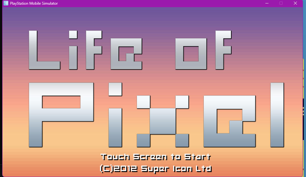 the PlayStation Mobile SDK, includes a variety of useful tools; the most useful of which is a program included, called the "PlayStation Mobile Simulator" .. this is a complete port of the PlayStation Mobile Runtime 2.00 to Windows, it is intended for development and testing; however it is feature complete; and can even (with much effort) run full retail PSM games, it also has export symbols to mono, GLES2, and more; which makes it very useful for writing the emulator (anything is better than dealing with the vitas Name-ID system :D) and is generally an incredibly useful reference for the emulator;  | | Life of Pixel running in the PlayStation Mobile Simulator |