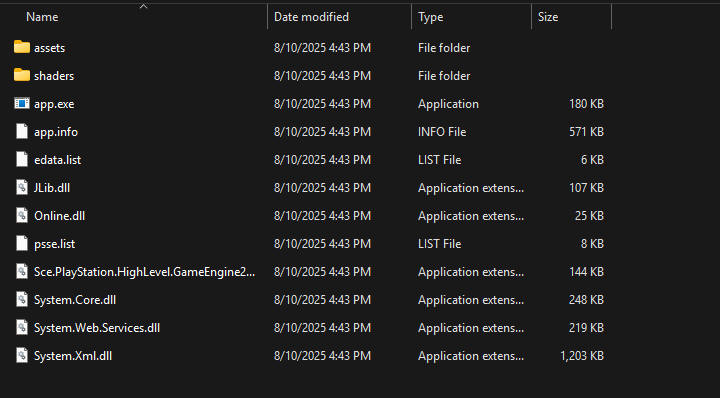 the cross-platform nature of PlayStation Mobile is possible due to PlayStation Mobile games; actually targeting a modified version of the Mono; in this case; "Mono" is a cross-platform re-implementation of the .NET Framework- its like Java, instead of code being compiled specifically for a specific CPU or hardware architecture its instead targeting a "bytecode" which you then have a program referred to as a "runtime" that interprets that code and translates it for your actual hardware; .. or another way to think about it- is that its basically as if you had an "emulator" for a made up computer that never was meant to be physically built; and there is no isolation, typically a 'runtime' can access all of your computer, such as all files folders, etc; however in the case of PlayStation Mobile; they actually have implemented sandboxing and isolated it from the rest of the system; so you really could consider it an 'emulator' .. and in that way- PS Minis actually is similar- because Mono is derived from .NET; it uses regular Portable Executables- that is the Executable format used on Microsoft Windows; which leads to some funny situations where PSM games contain an "app.exe" and a bunch of familiar dynamic link libraries such as "System.dll"  | | app.exe along with many DLL's such as System.dll, System.Core.dll, etc |